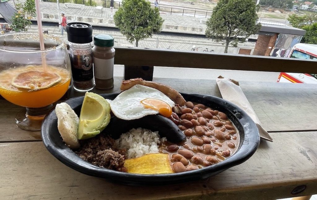 Nos recomendaron un restaurantecito escondido, con una vista que quita el aliento (y eso que ya veníamos sin aire de tanta subida). No tenía nombre lujoso, pero sí unas mesas de madera, sombrillas de colores, y una señora que apenas nos vio dijo: “¿Qué más pues, mis amores? ¿Se antojan de algo caserito?”